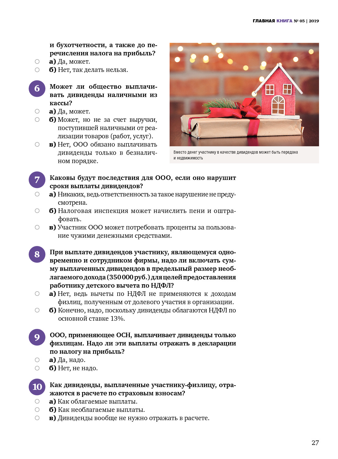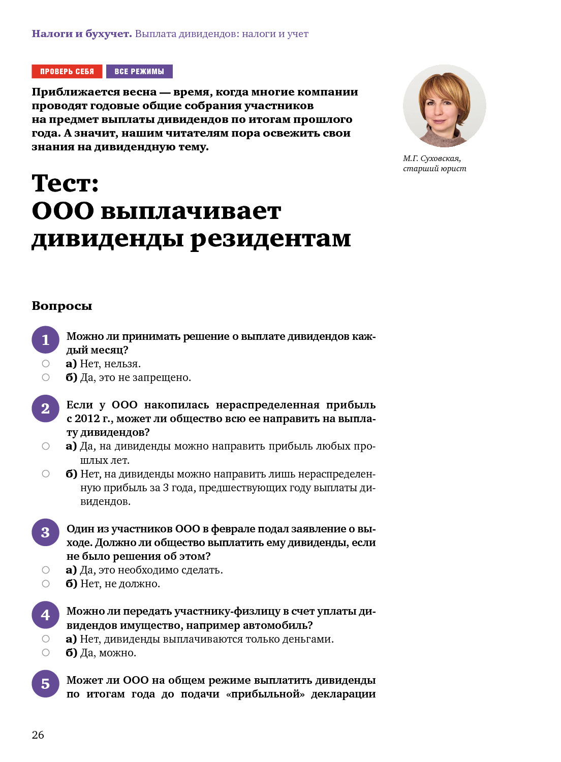 Тест: ООО выплачивает дивиденды резидентам
