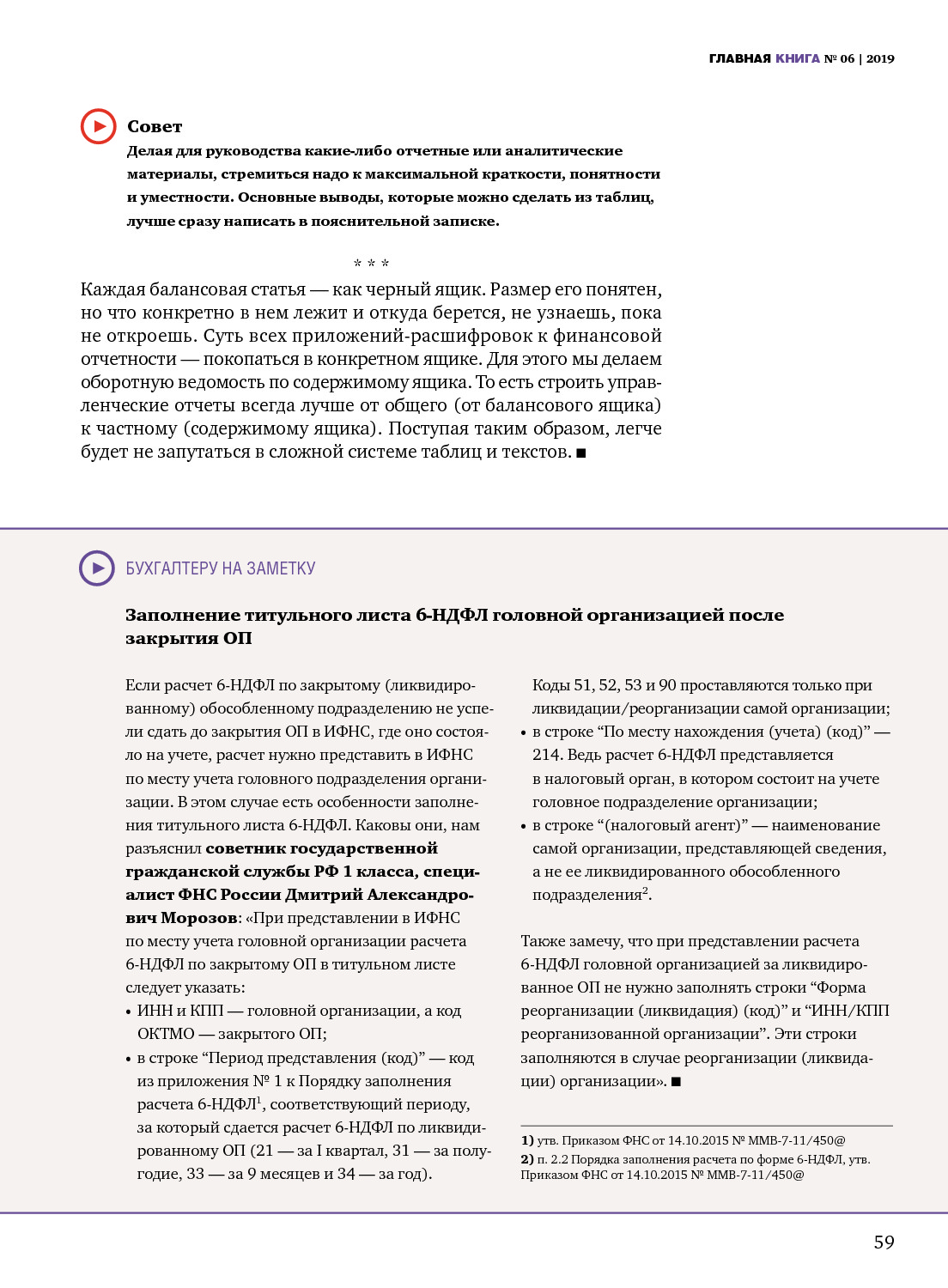 Заполнение титульного листа 6-НДФЛ головной организацией после закрытия ОП