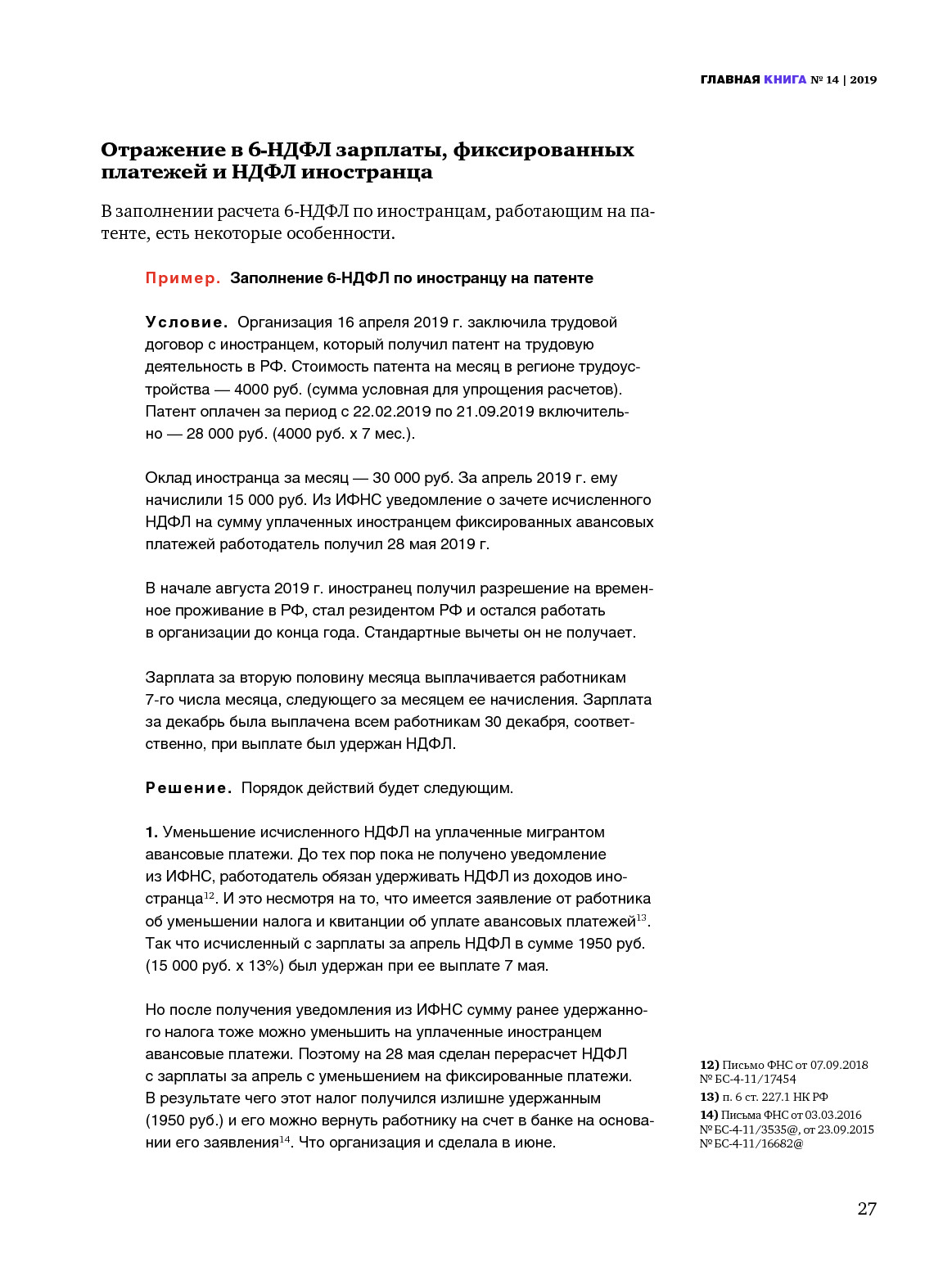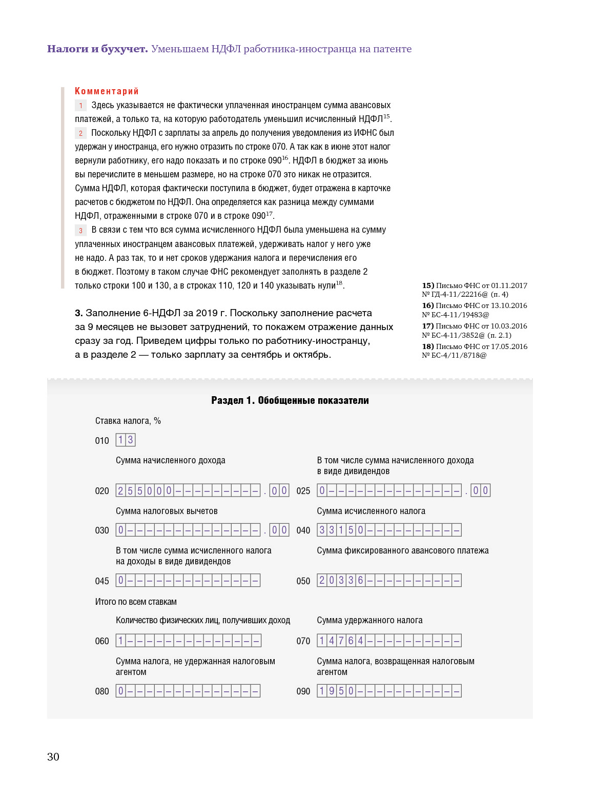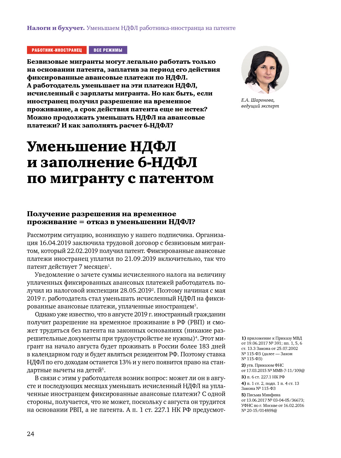 Уменьшение НДФЛ и заполнение 6-НДФЛ по мигранту с патентом