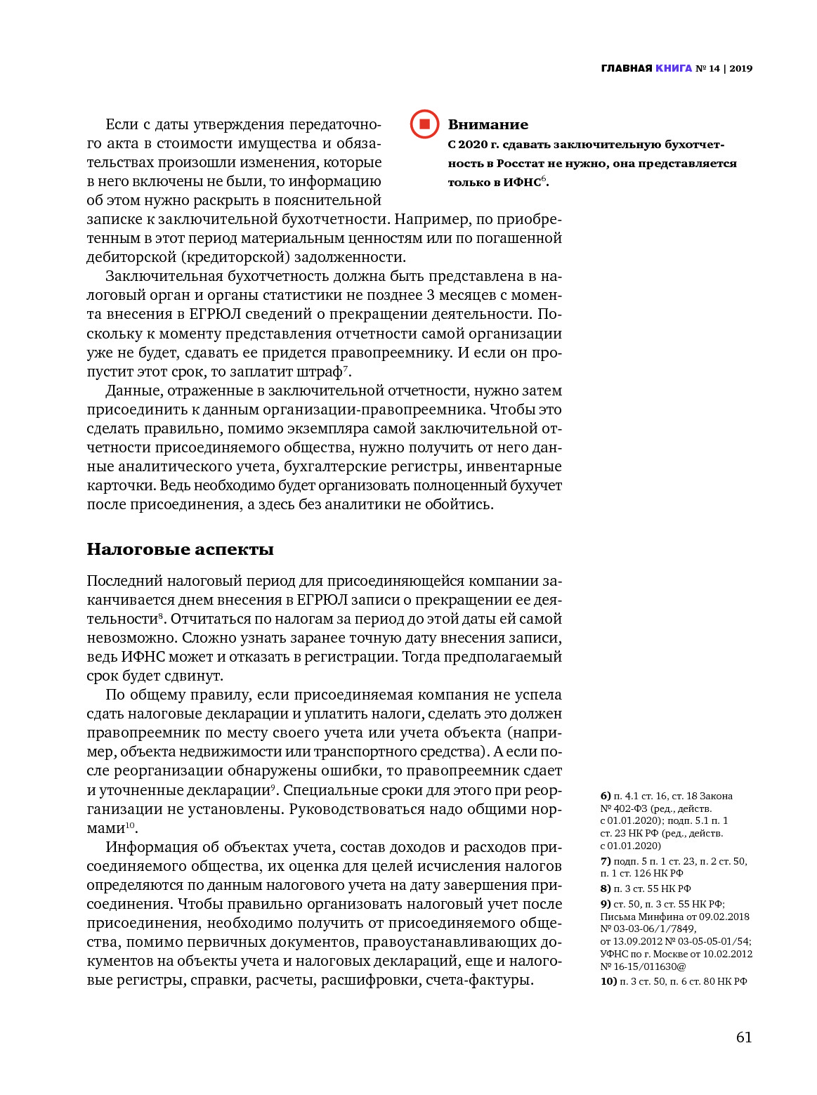 Присоединение: бухгалтерская и налоговая отчетность