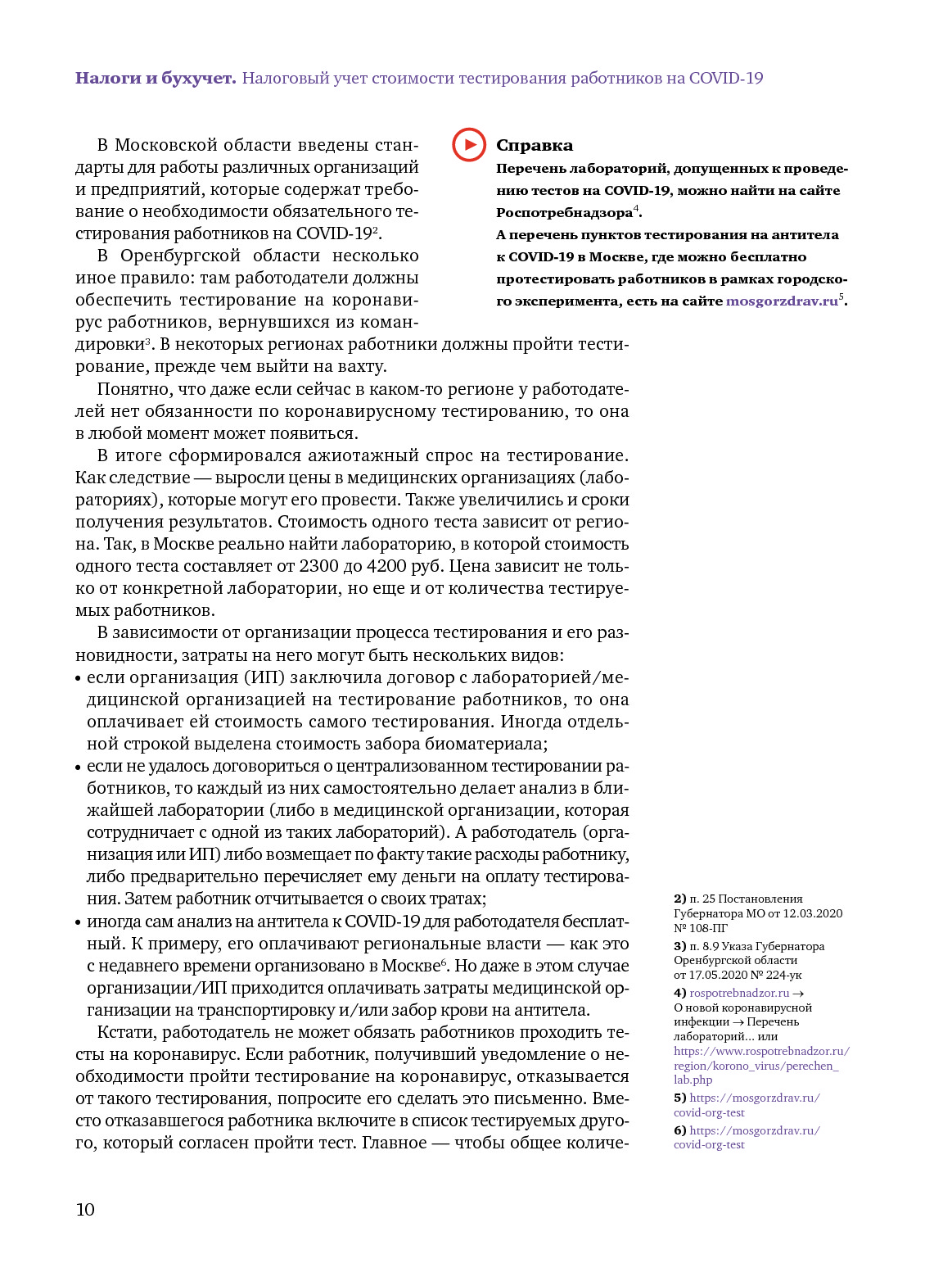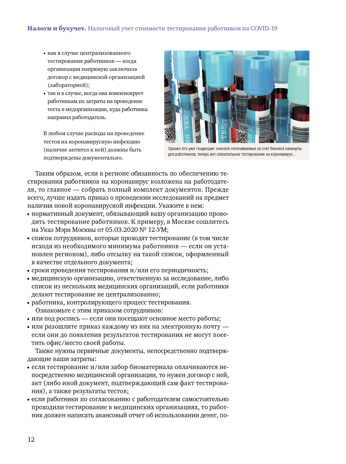 Обязательное тестирование работников на коронавирус: что с налоговыми расходами