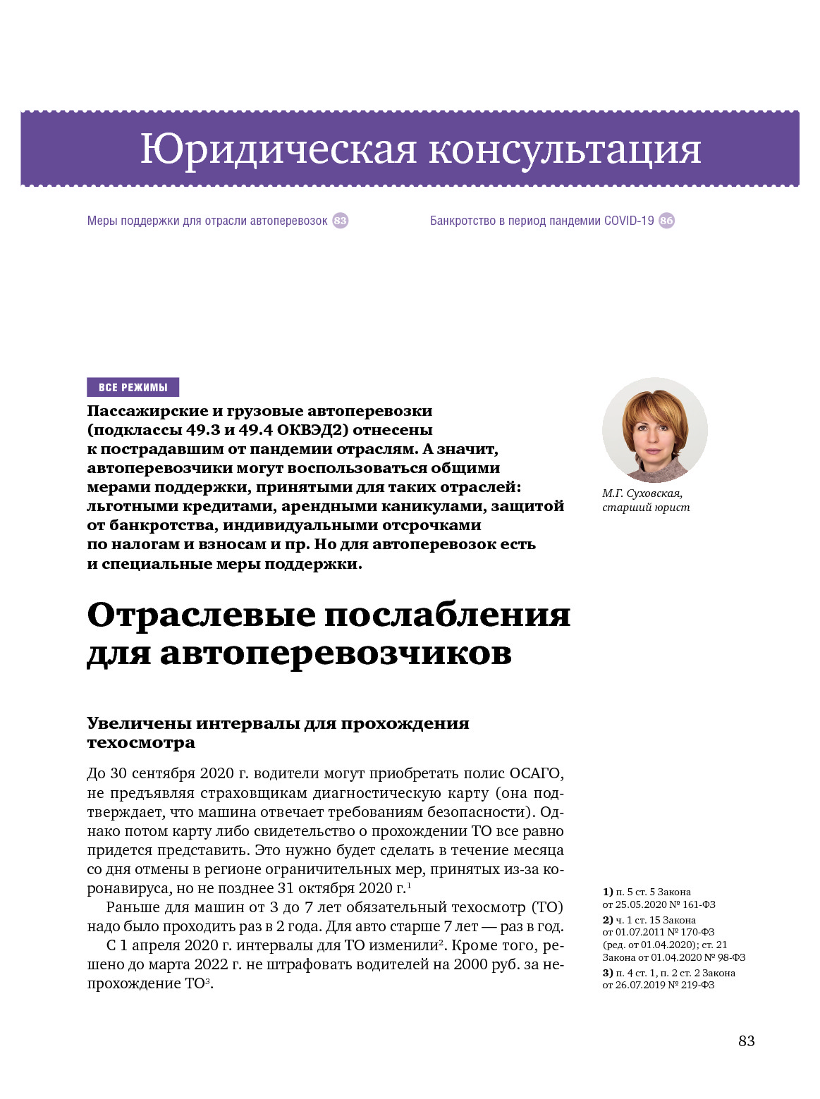 Отраслевые послабления для автоперевозчиков