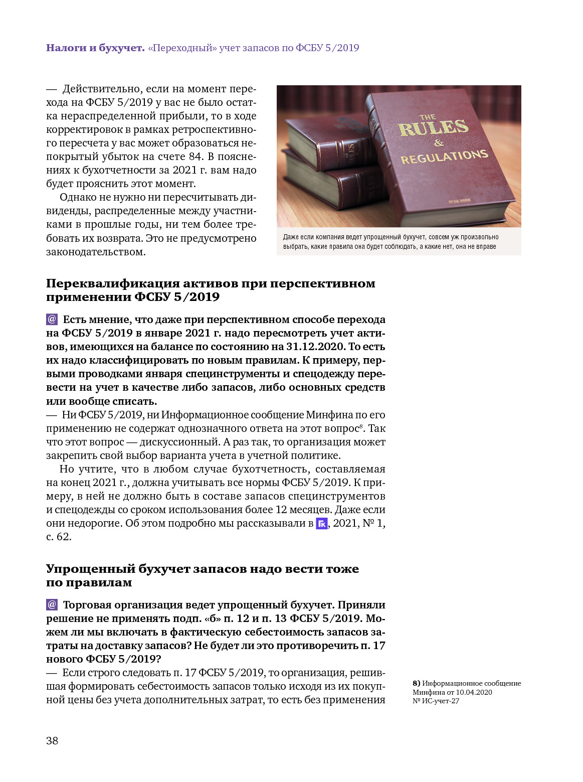 «Переходные» вопросы по стандарту «Запасы»