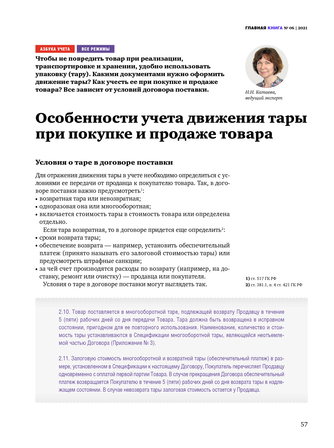 Особенности учета движения тары при покупке и продаже товара
