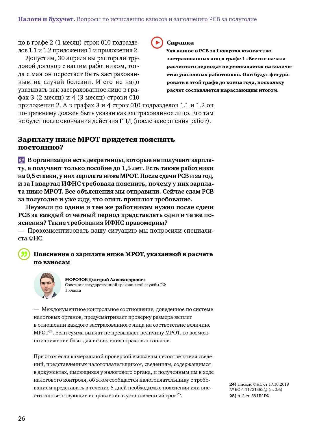Заполняем РСВ за полугодие с оглядкой на позицию контролирующих органов