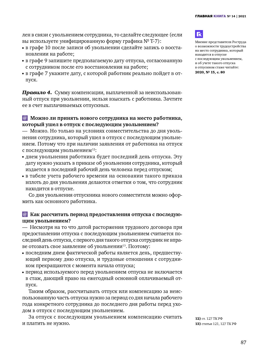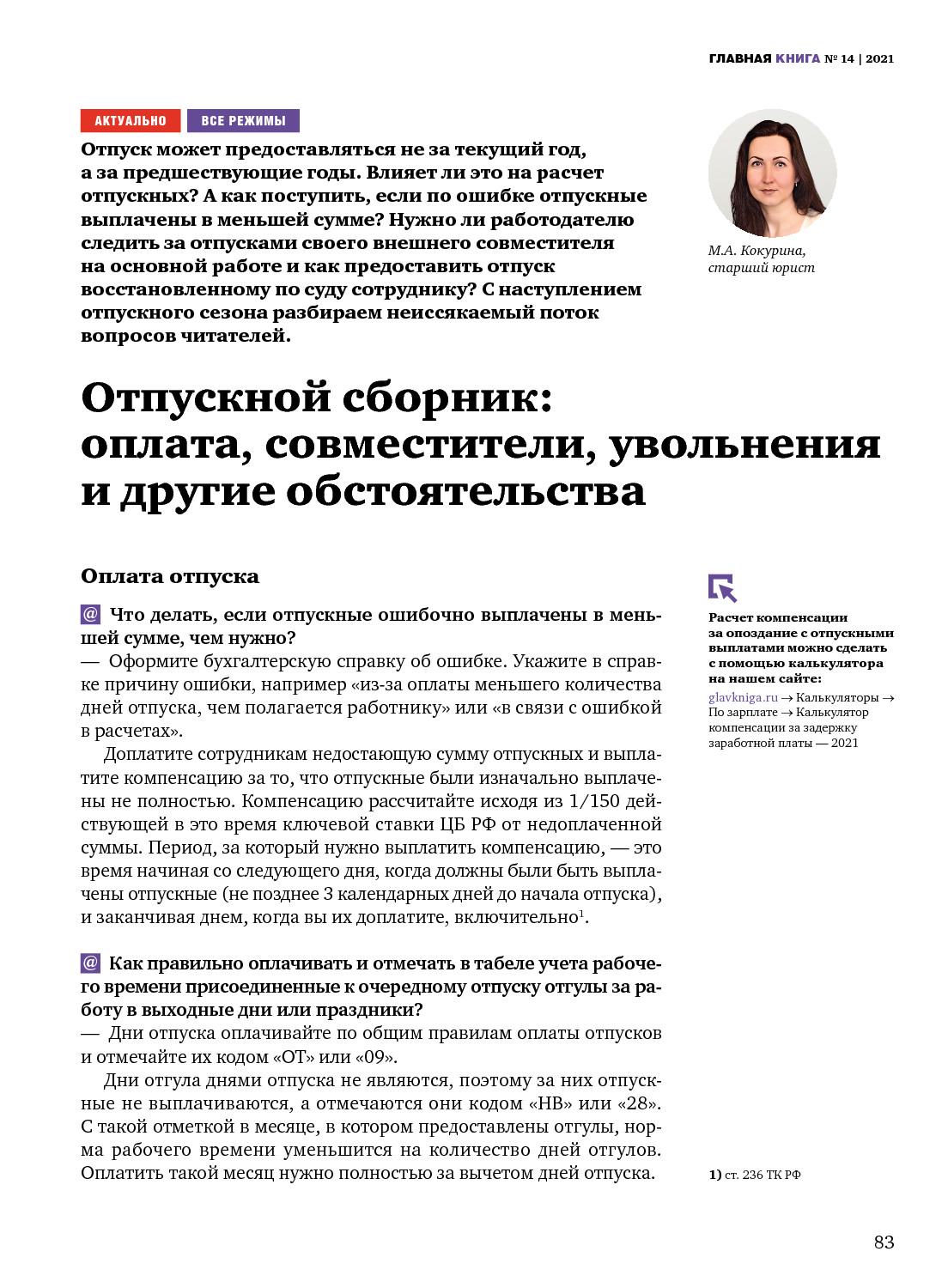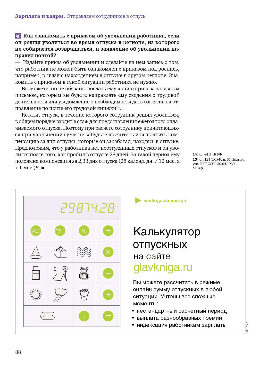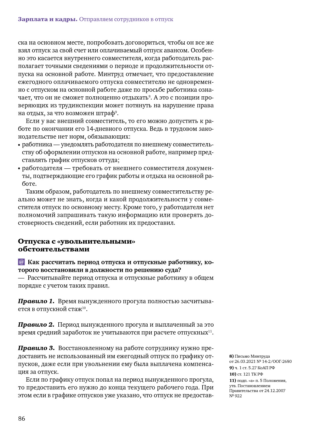 Отпускной сборник: оплата, совместители, увольнения и другие обстоятельства