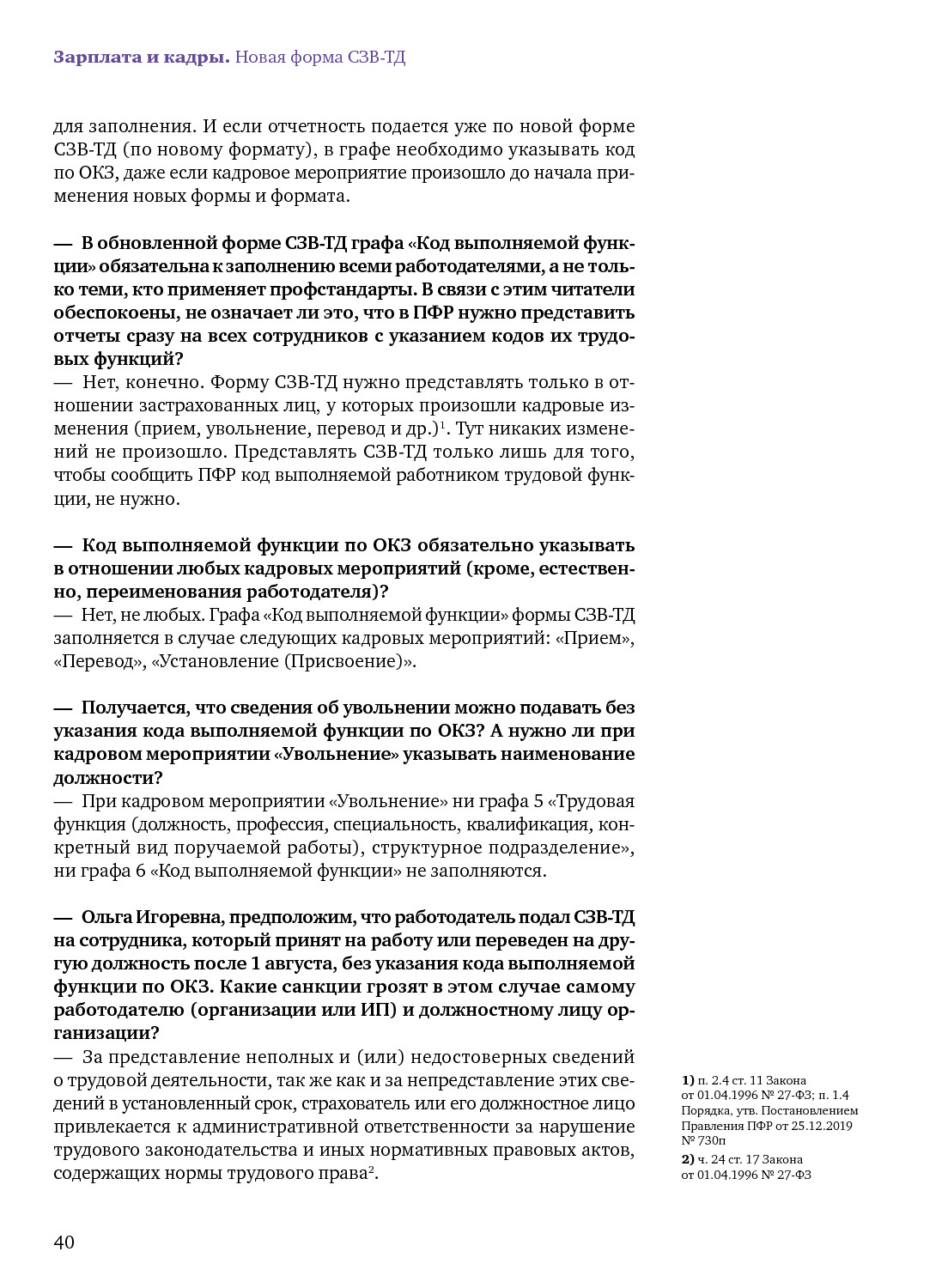 Код функции в СЗВ-ТД: разбираемся с изменениями