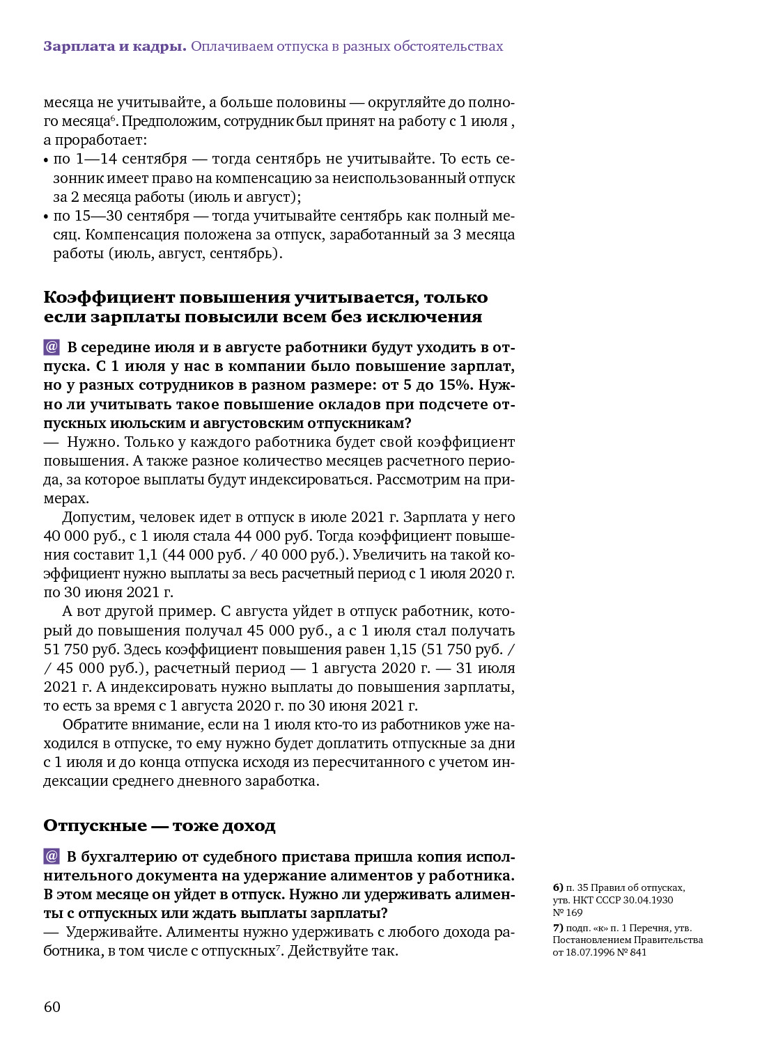 Особенности отпускных расчетов