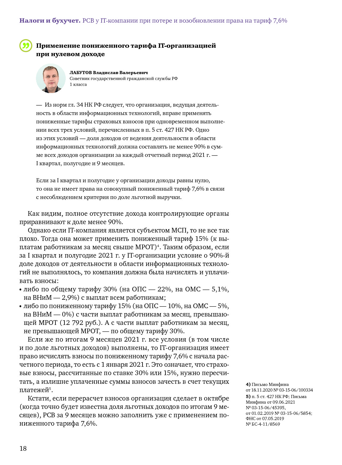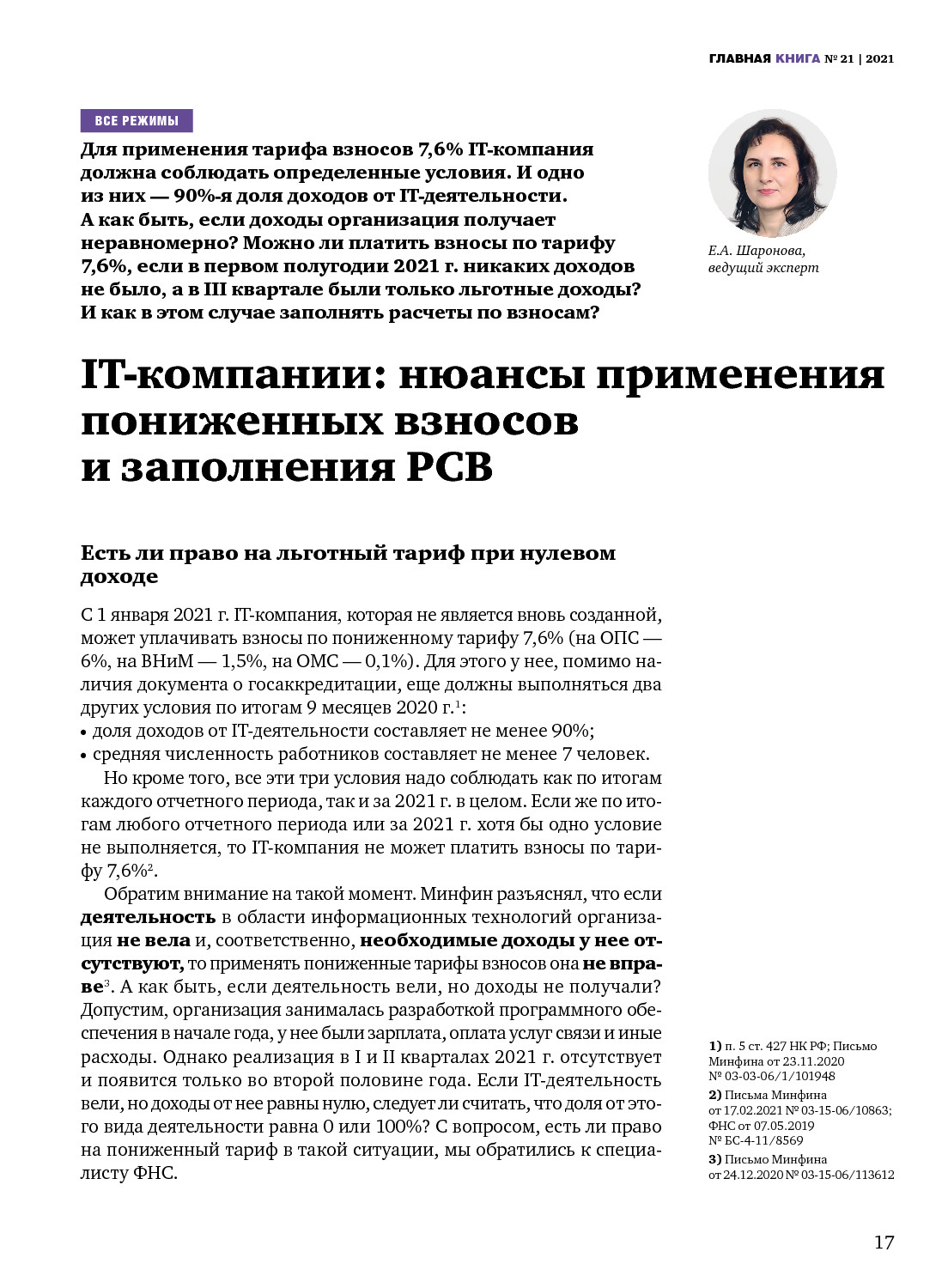 IT-компании: нюансы применения пониженных взносов и заполнения РСВ
