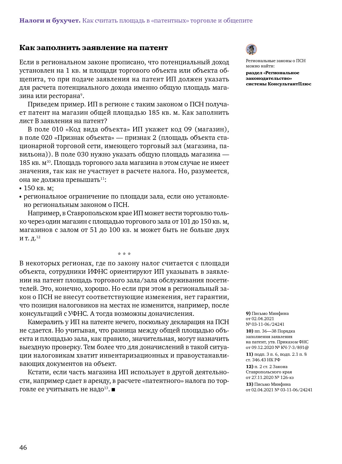 Патент по торговле и общепиту: площадь зала или площадь объекта?