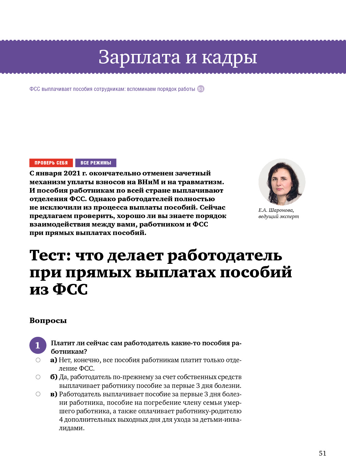 Тест: что делает работодатель при прямых выплатах пособий из ФСС