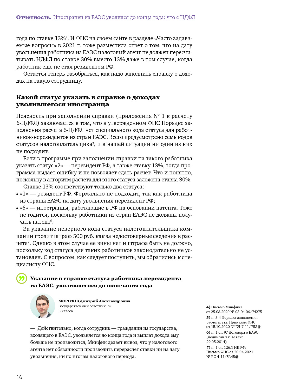 Работник из ЕАЭС на дату увольнения — нерезидент: как заполнять 6-НДФЛ