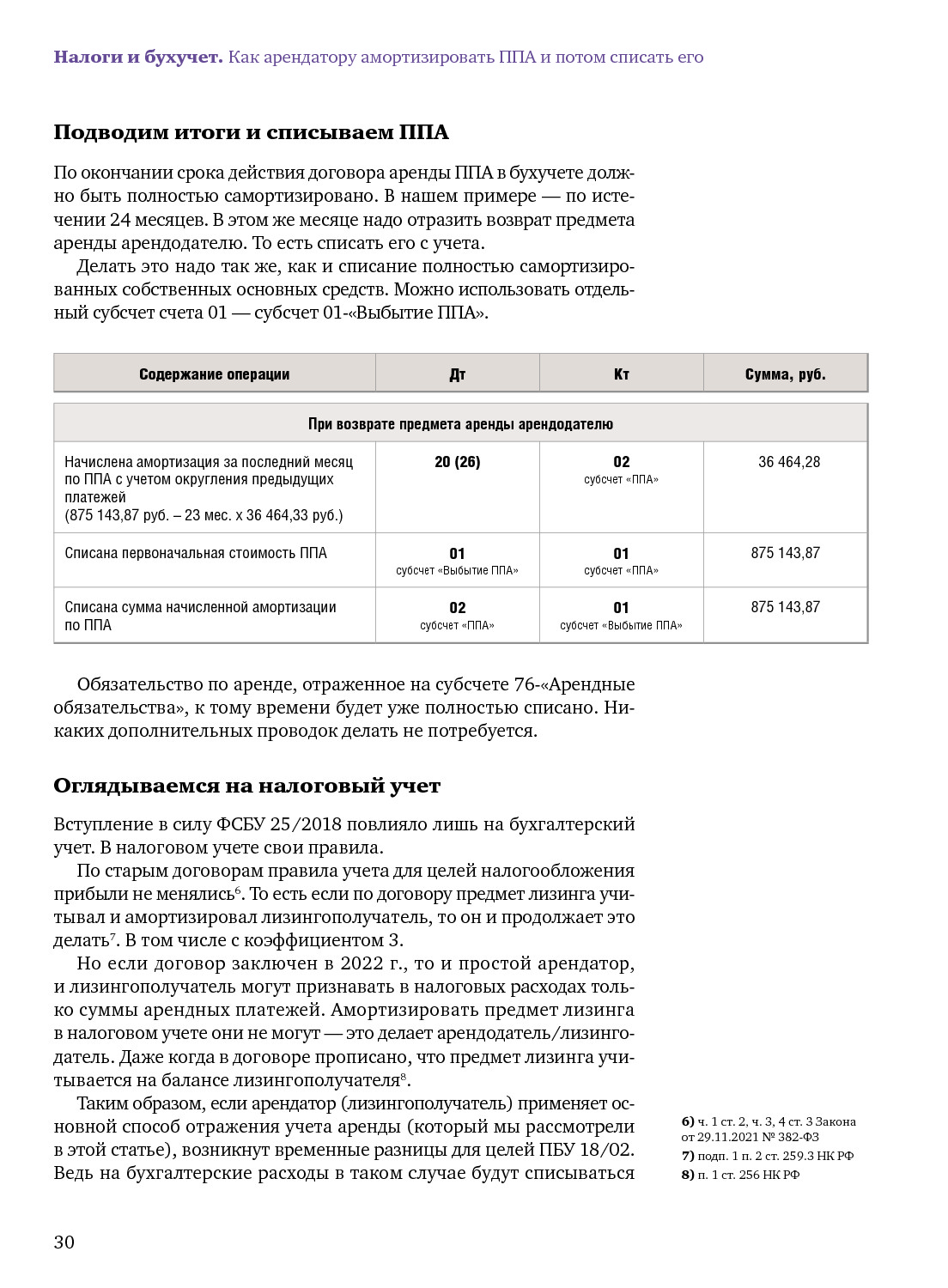 ФСБУ 25/2018: амортизация ППА, признание процентов арендатором и списание ППА