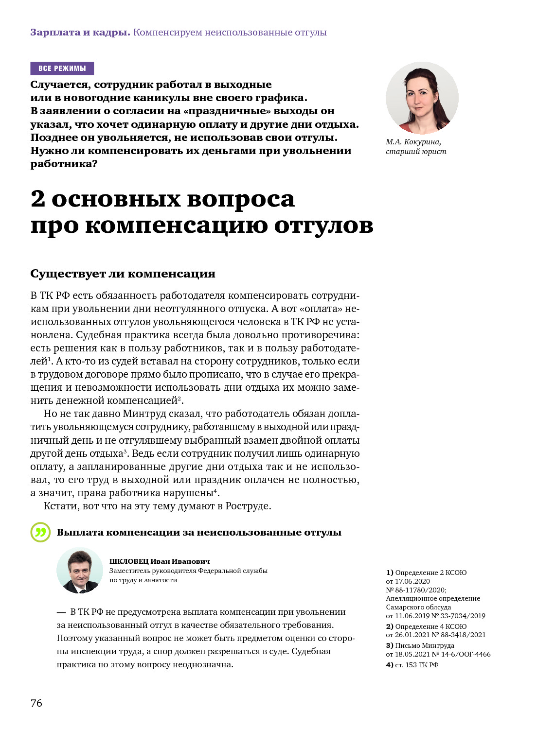 2 основных вопроса про компенсацию отгулов