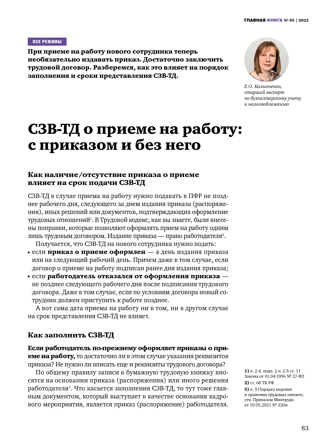 СЗВ-ТД о приеме на работу: с приказом и без него