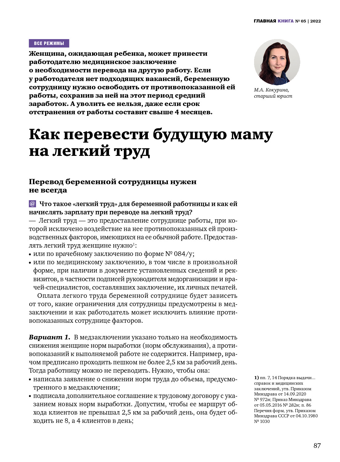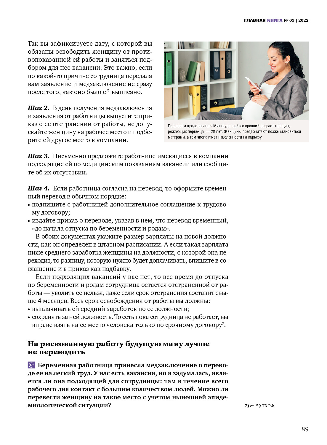 Как перевести будущую маму на легкий труд