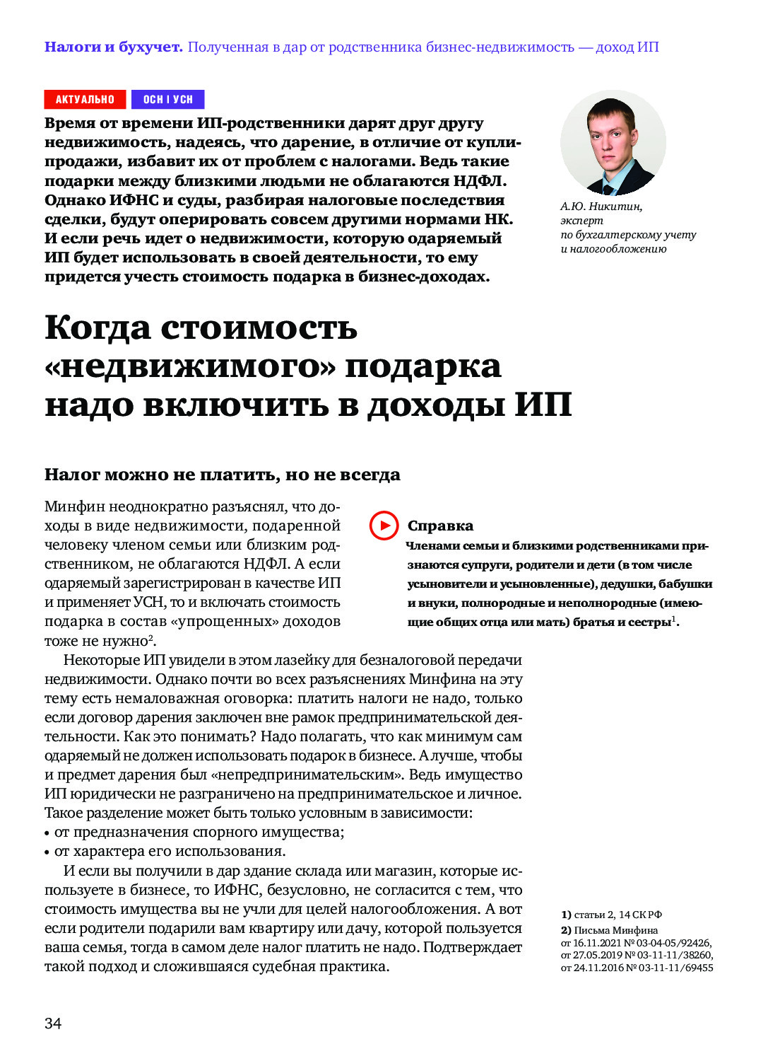Когда стоимость «недвижимого» подарка надо включить в доходы ИП