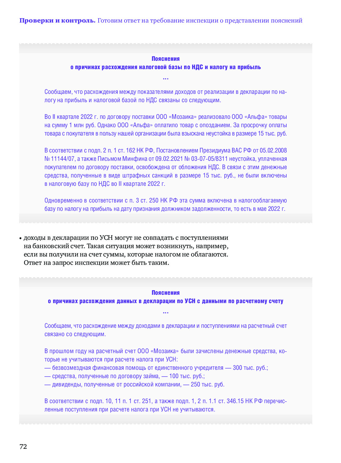 Пояснения в ИФНС: ассорти из образцов на разные случаи жизни