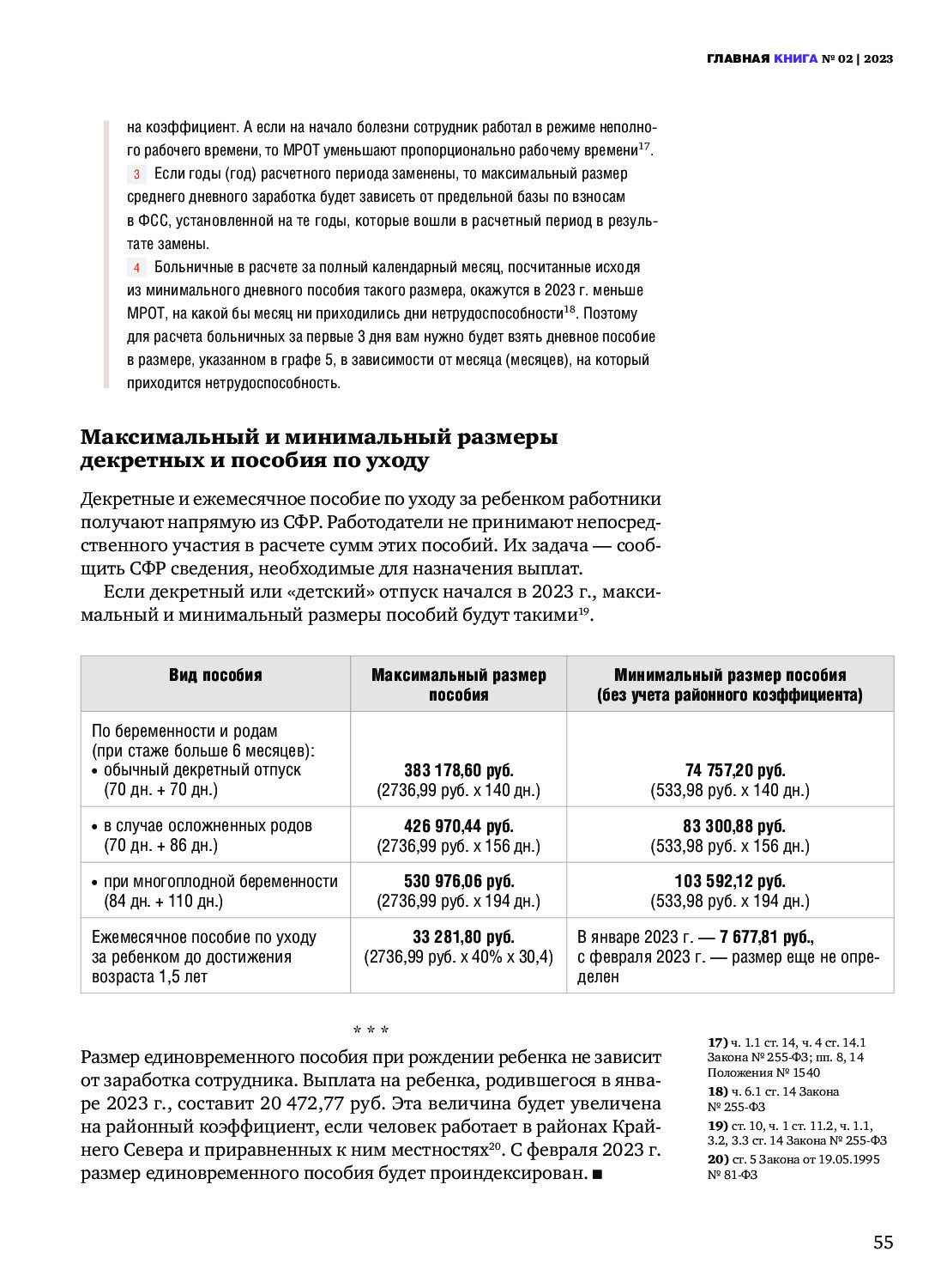 Максимальные и минимальные размеры пособий — 2023