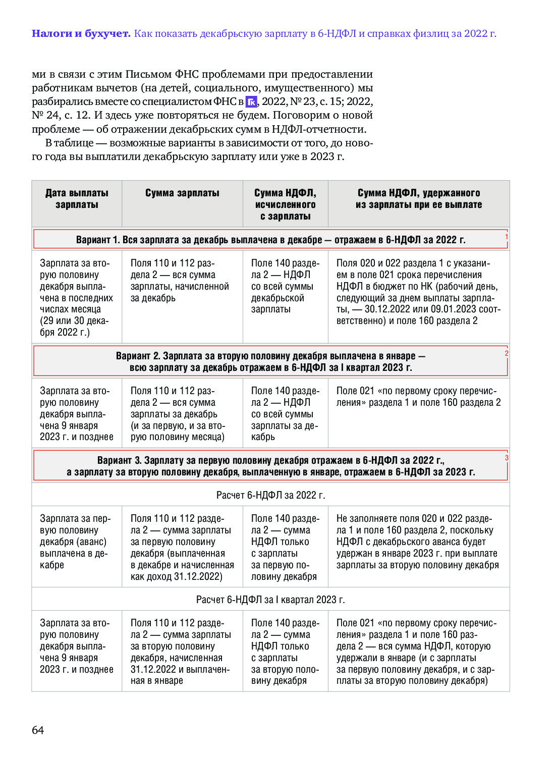 3 варианта отражения декабрьской зарплаты в НДФЛ-отчетности