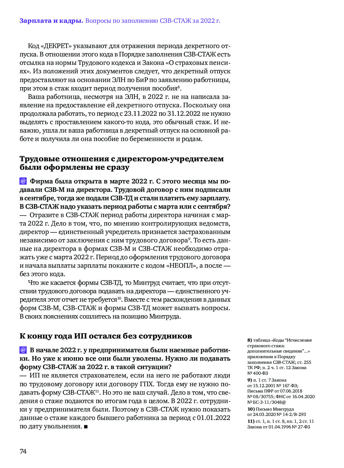 6 вопросов о заполнении СЗВ-СТАЖ за 2022 год