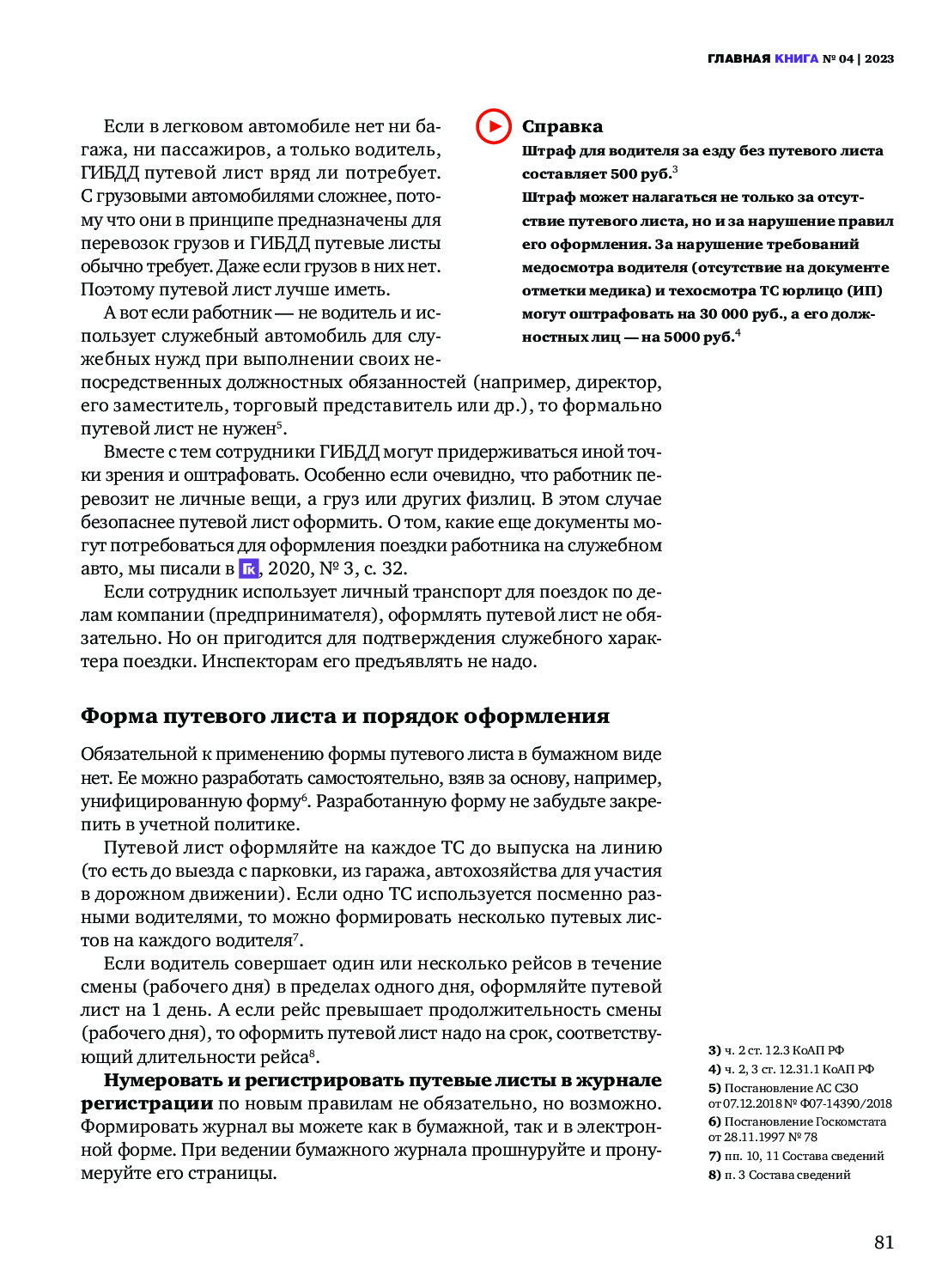 Требования к оформлению путевого листа в 2023 году