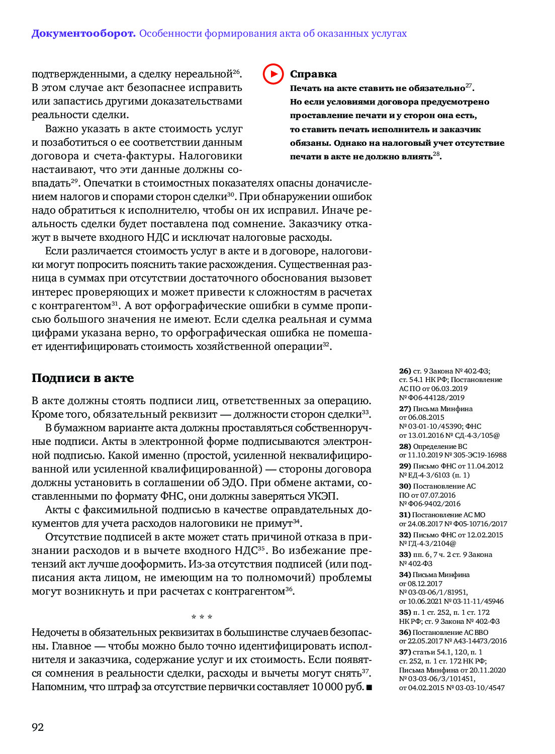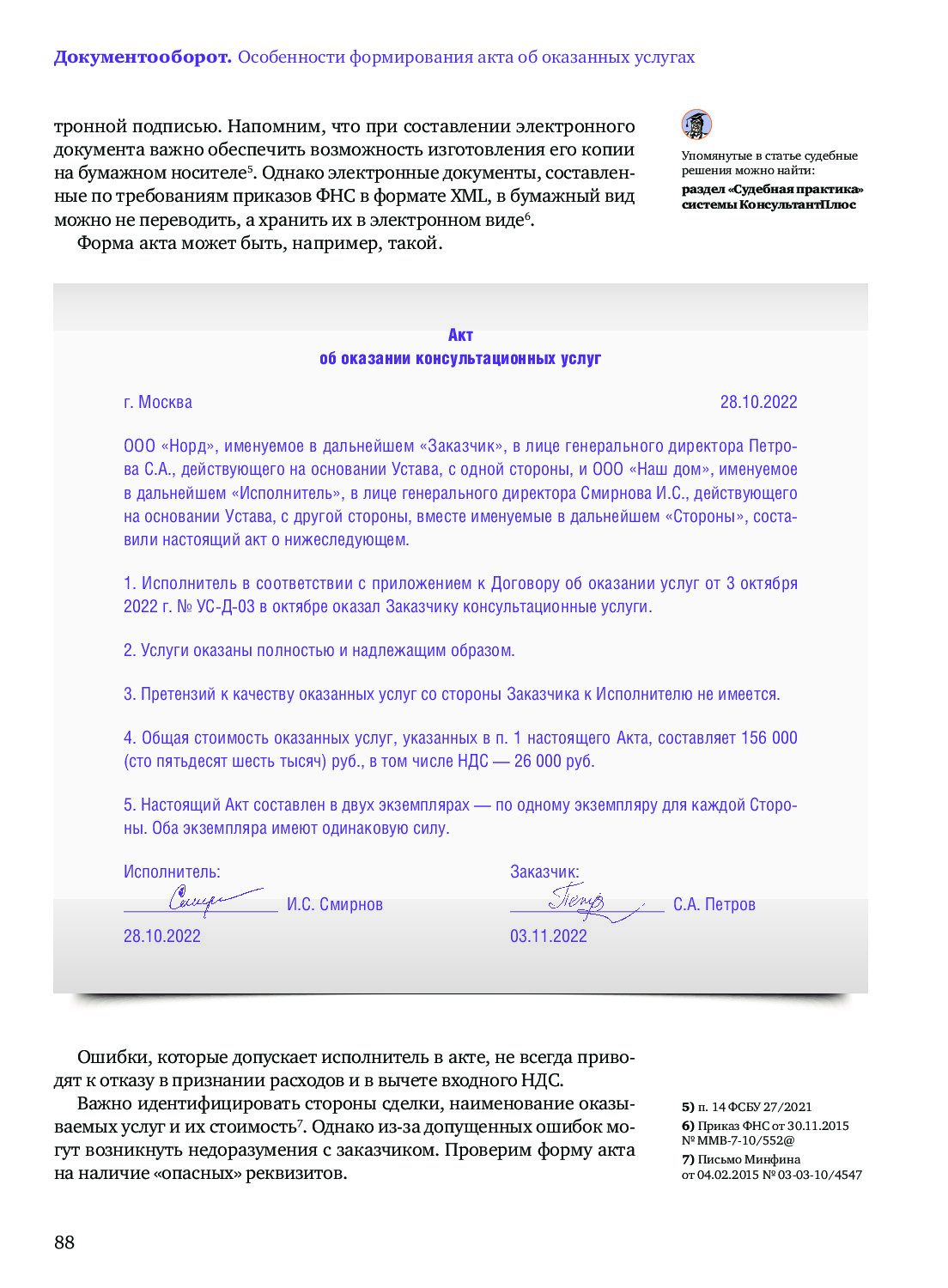 Формирование акта об оказании услуг: внимание на «опасные» реквизиты