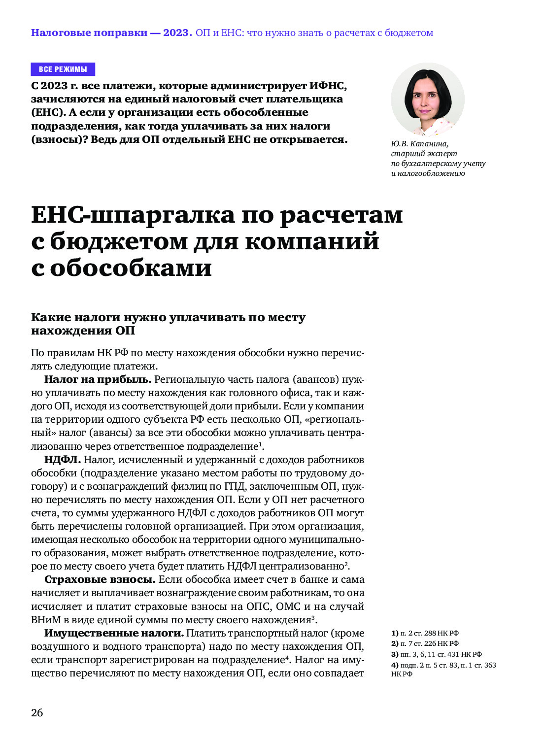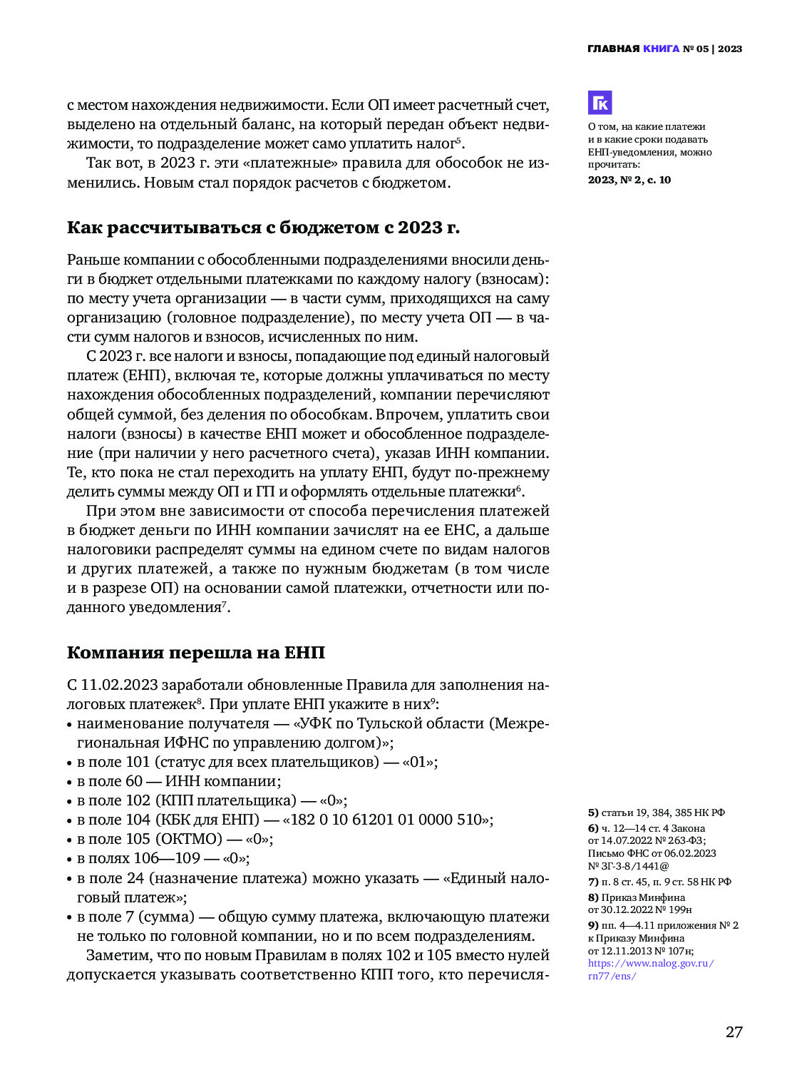 ЕНС-шпаргалка по расчетам с бюджетом для компаний с обособками
