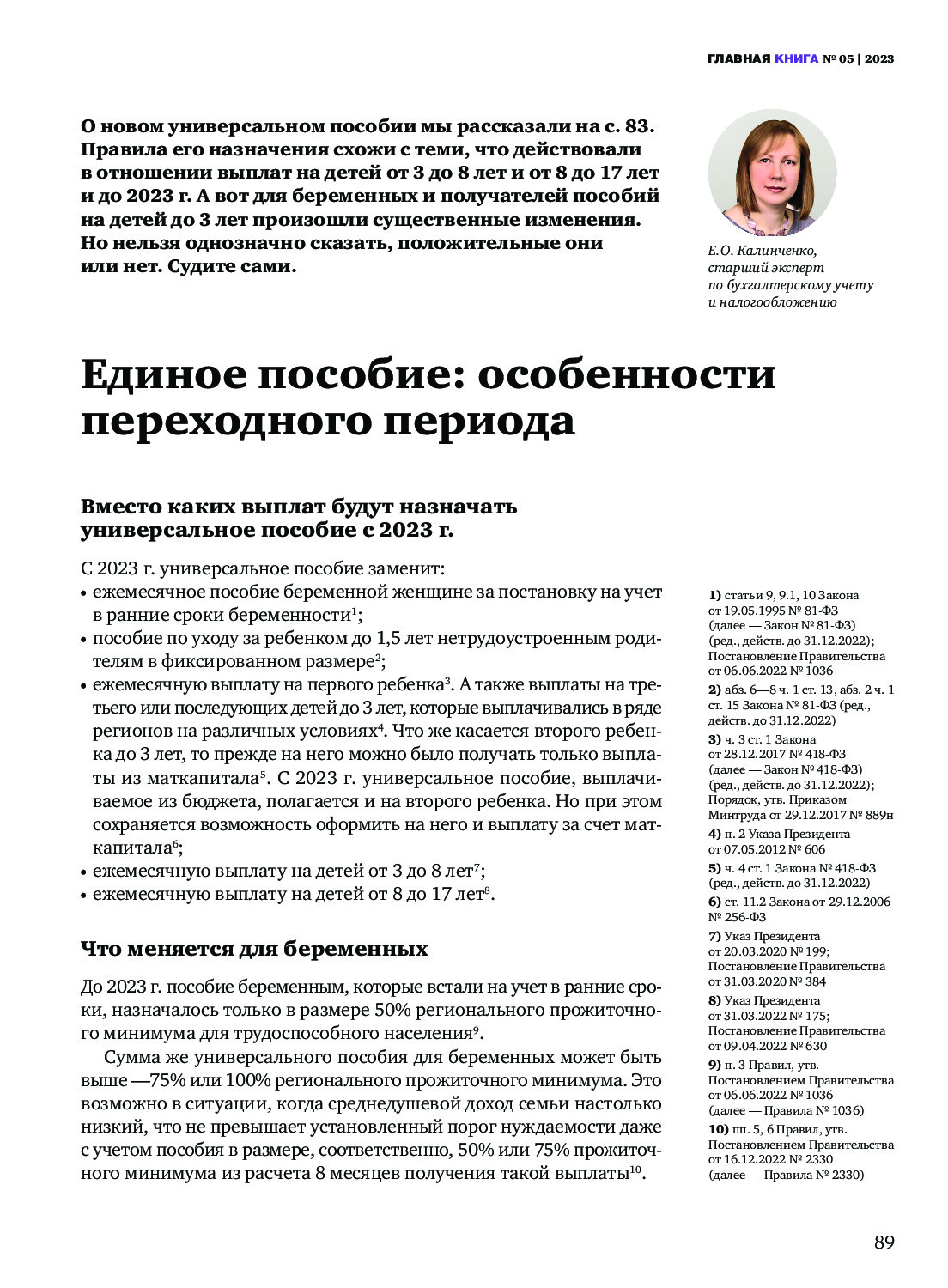 Единое пособие: особенности переходного периода
