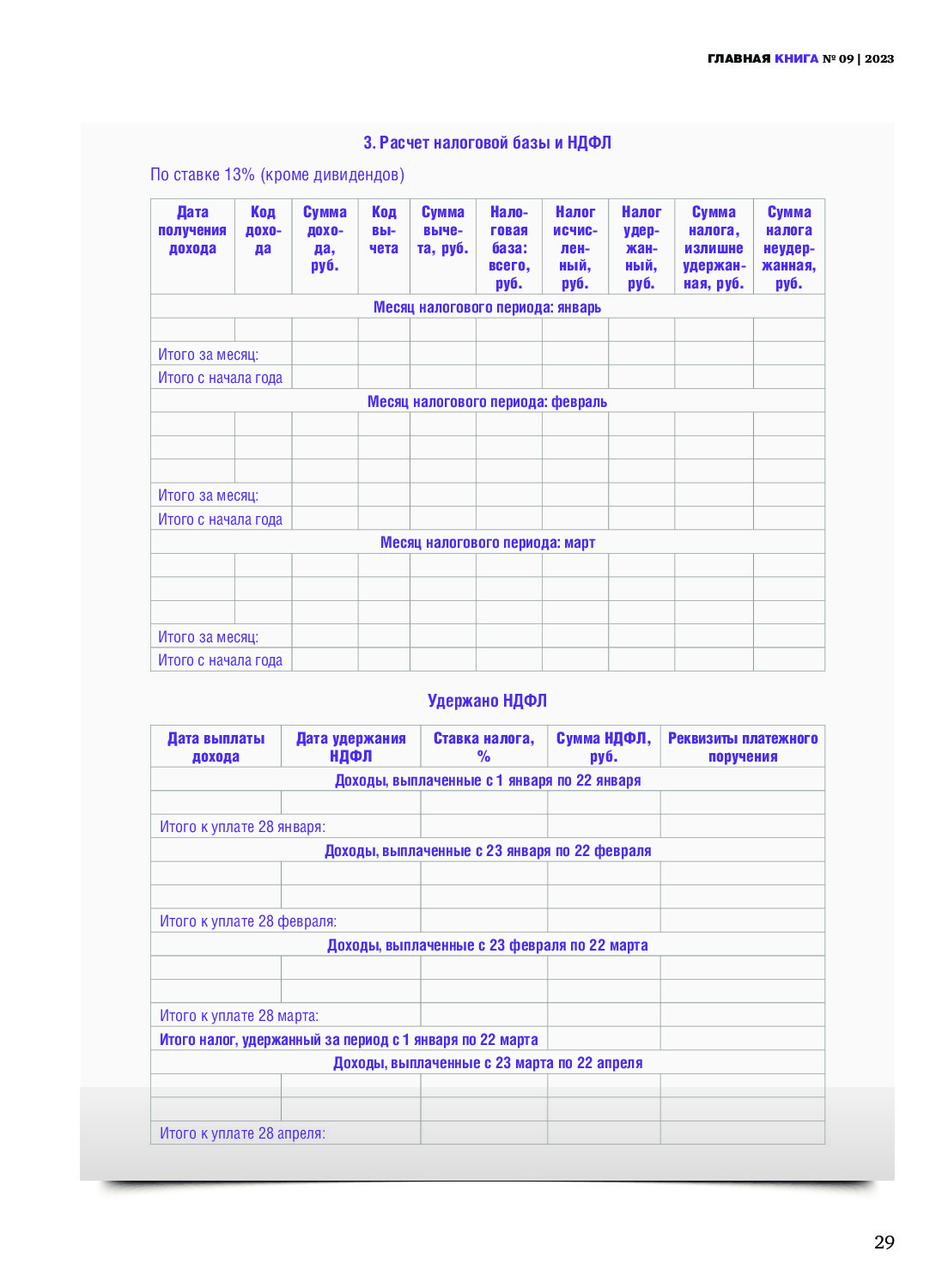 Налоговый регистр по НДФЛ — 2023