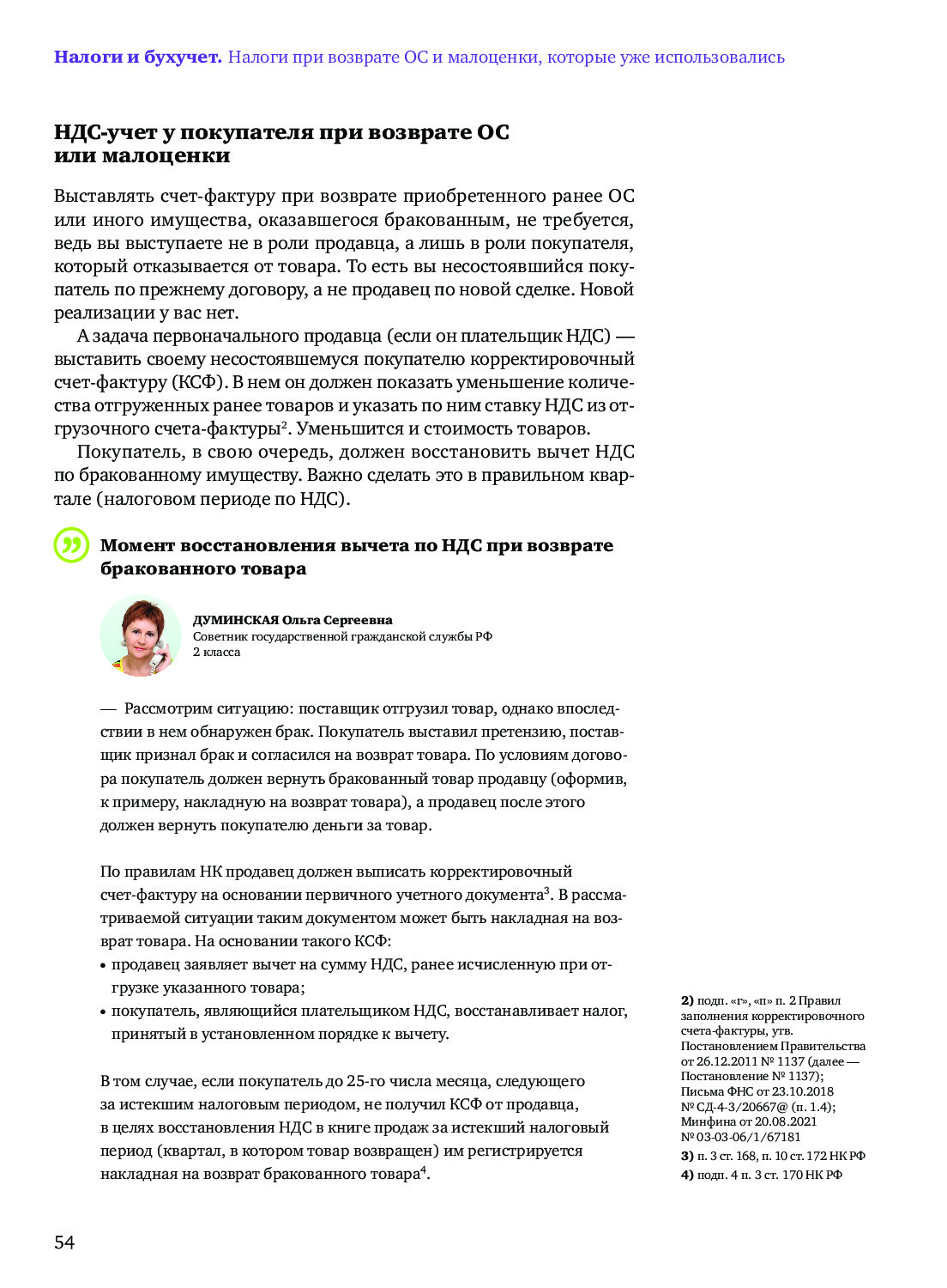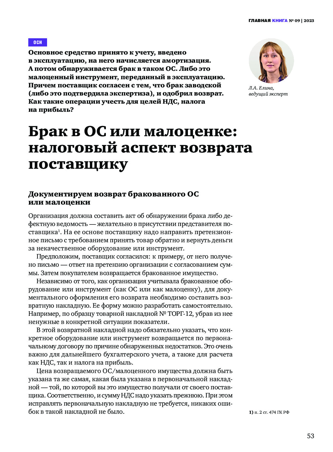 Брак в ОС или малоценке: налоговый аспект возврата поставщику