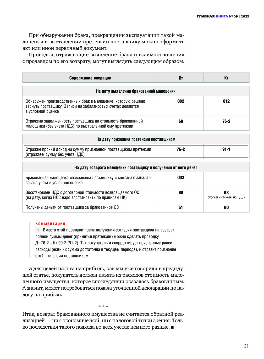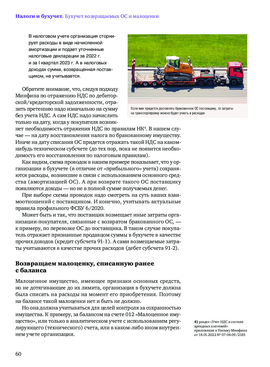 Бухучет возврата поставщику бракованных ОС и малоценки