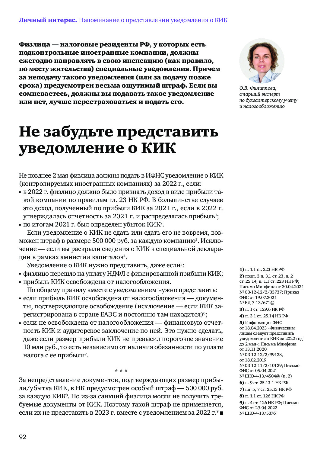 Не забудьте представить уведомление о КИК