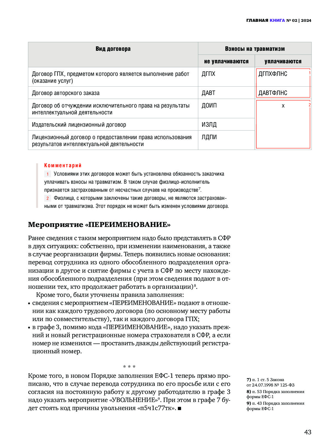 Новшества в заполнении подраздела 1.1 формы ЕФС-1