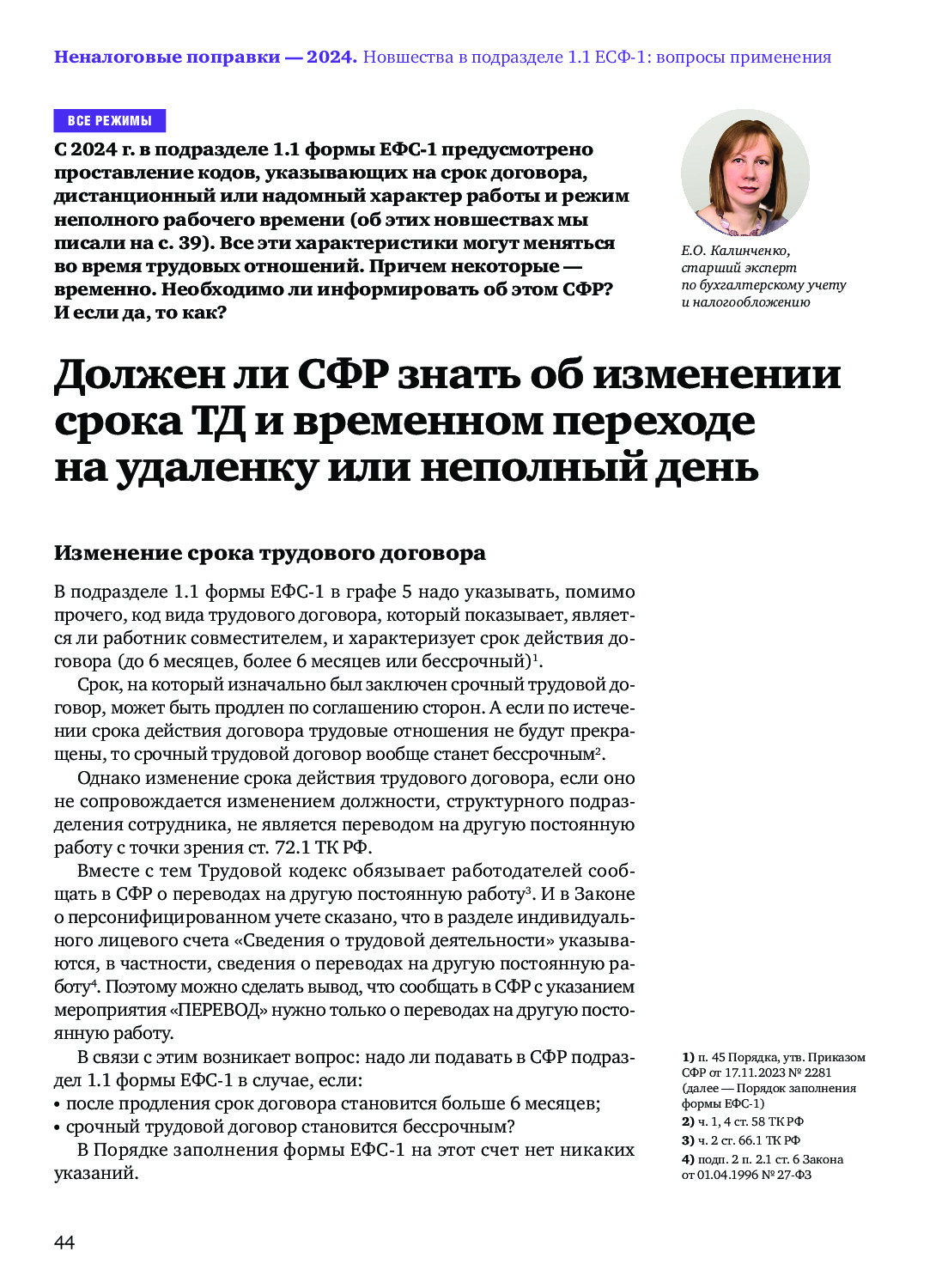 Должен ли СФР знать об изменении срока ТД и временном переходе на удаленку или неполный день