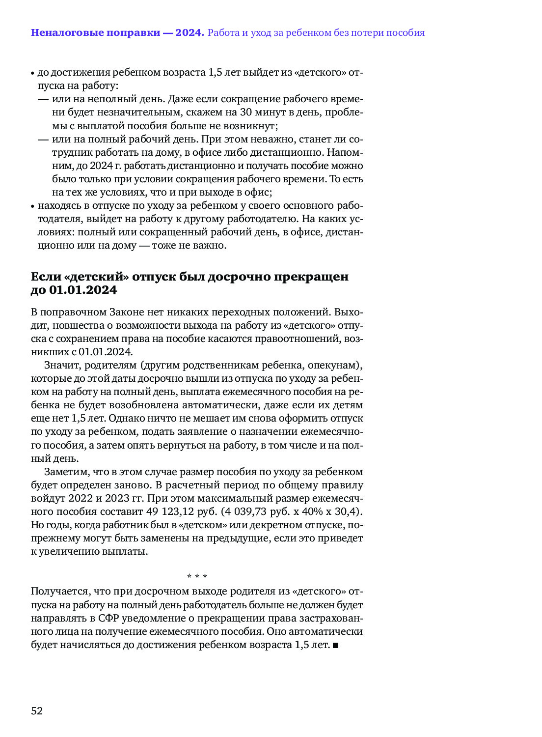Выход на работу из «детского» отпуска больше не лишит пособия по уходу