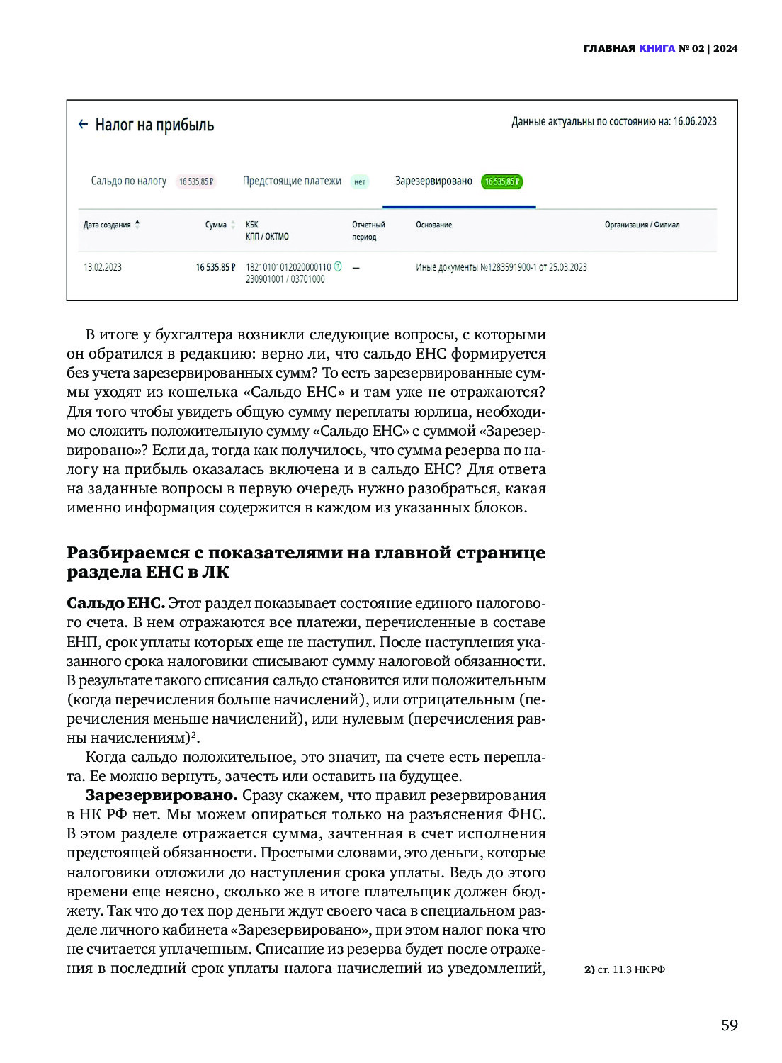 Когда сальдо ЕНС может включать в себя сумму из резервов