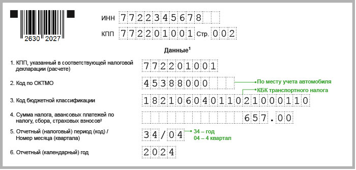 | Поле платежки | Как заполнить |