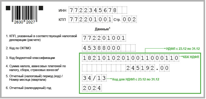По НДФЛ действуют особые коды для поля 5 «Отчетный (налоговый) период (код) / Номер месяца (квартала)» уведомления о сумме удержанного НДФЛ — в зависимости от срока его уплаты.